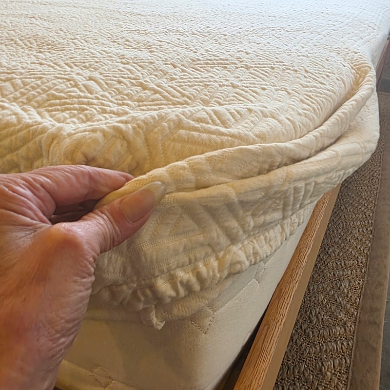 Easy care mattress protector made from Certified Organic Cotton matelasse fabric. Thick, soft and luxurious, our fabric is a premium high-quality 400 gram weight.
